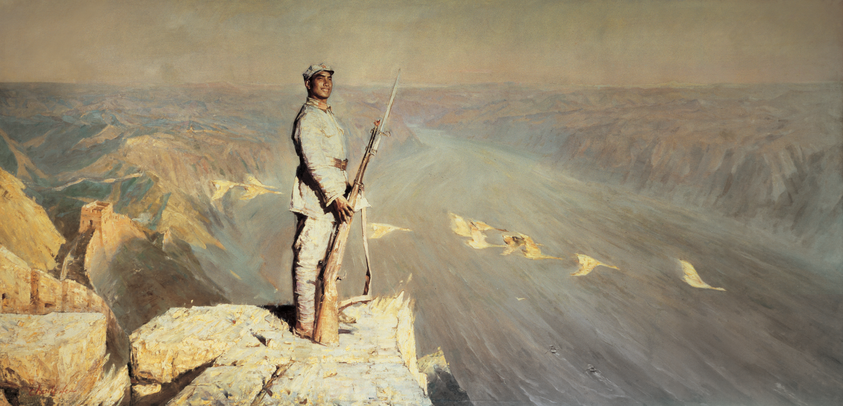 《黄河颂》在苍茫天地间奏响民族精神的铿锵回响,于1977年「全军美术作品展」首次展出便引起轰动,被誉为陈逸飞历史主题创作的巅峯之作;