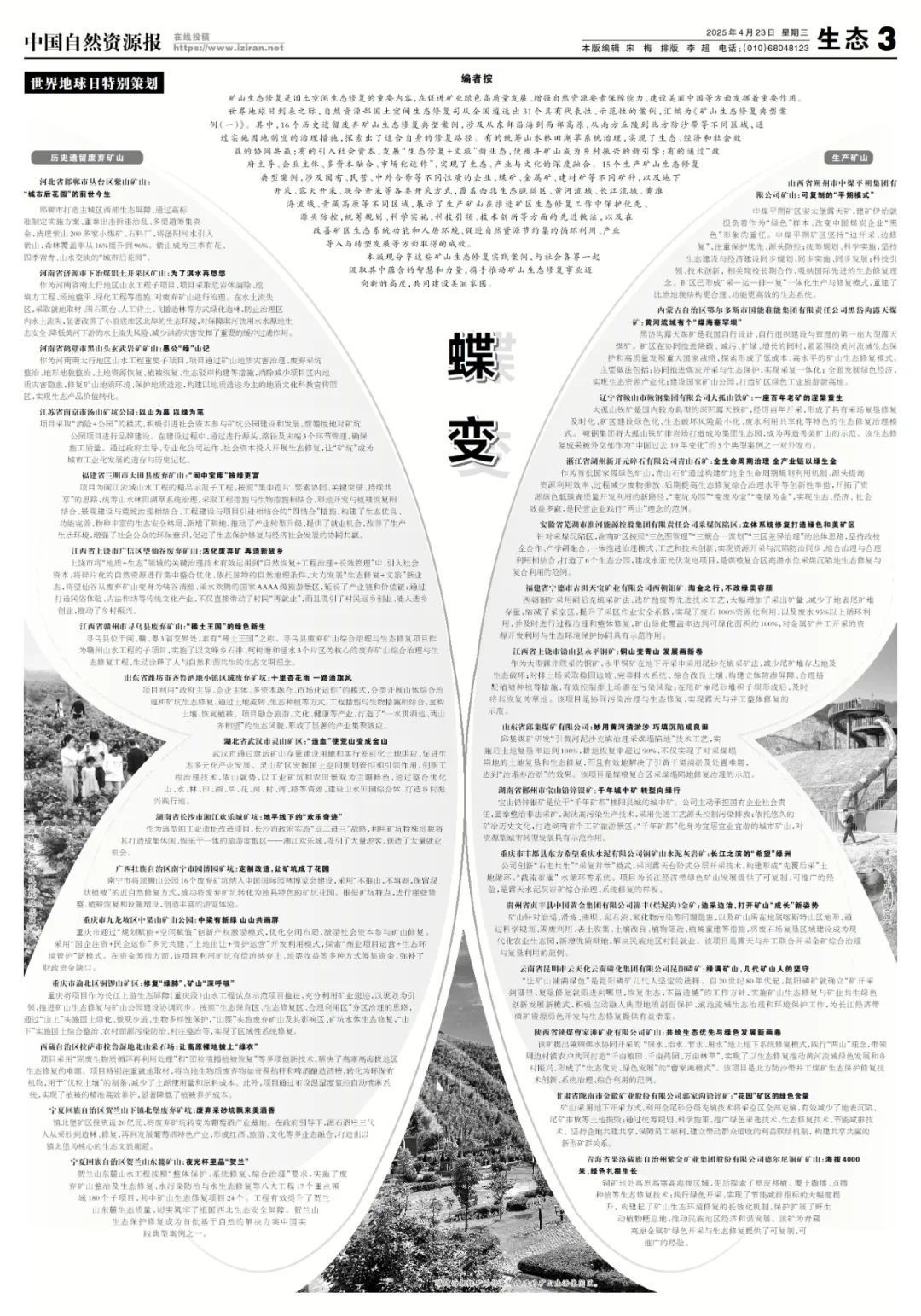 现分享这些矿山生态修复实践案例,与社会各界一起汲取其中蕴含的智慧和力量,携手推动矿山生态修复事业迈向新的高度,共同建设美丽家园。