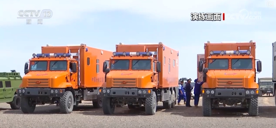 4月25日10时许,地面搜救力量指挥车、搜索车、处置车、医监医救车等近百台车辆装备,分多路向待命点集结。14时30分,在接到北京中心通报返回舱落点作标后,空中分队5架直升机精准降落在返回舱周围,按程序进行相关处置。