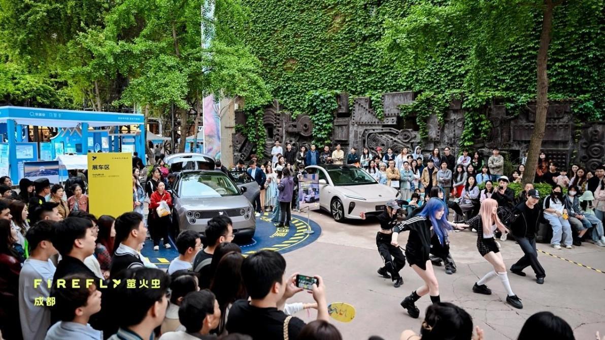 4月26日周六,成都东郊记忆银杏广场迎来一场充满青春活力的潮流派对。蔚来旗下智能电动高端小车品牌firefly萤火虫首次在成都亮相,携手知名韩舞厂牌KDC,以“成都正在萤夜中”为主题,打造了一场百人K-POP随舞快闪活动。现场百首热门歌曲轮番上演,吸引了众多时尚达人、年轻家庭、和萌宠家庭驻足参与,成为周末成都街头一道亮丽的风景线。