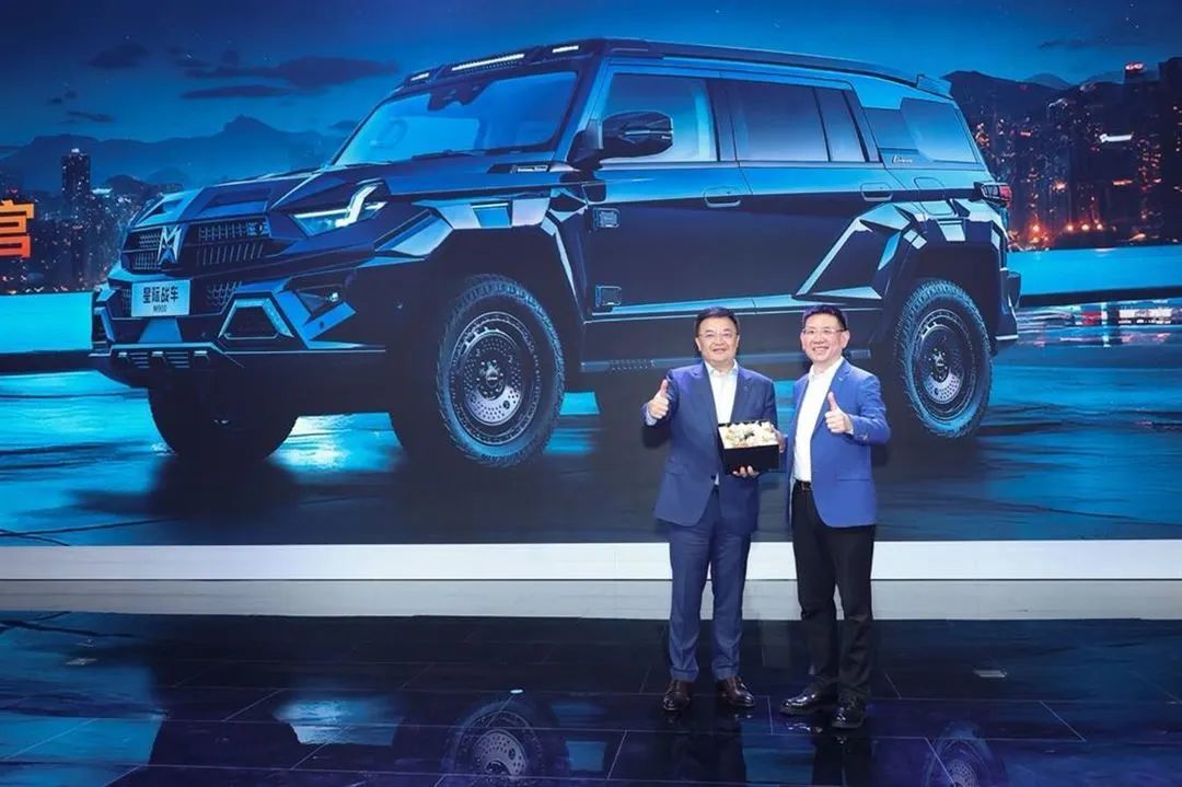 东风猛士科技在上海车展举办了一场交付礼。东风汽车集团有限公司党委常委、副总经理尤峥,为罗伦士M900星际战车的01号车主,高德红外董事长黄立先生进行了新车交付。