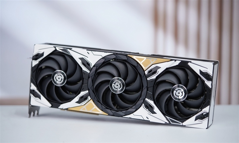 索泰RTX 5070 Ti天启显卡顶部同样是黑白撞色设计,保留了极大的散热开口。