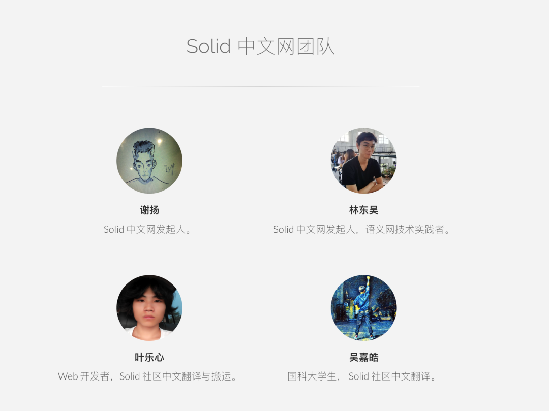 今天我重新访问了一下 solid 中文的官网,它的证书已经失效了,但是当我忽略浏览器的警告,选择依然打开网页后,还是能看到网站原本的样子,谢扬作为发起人,头像依然挂在第一位