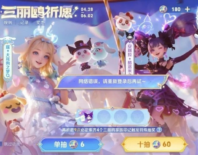 28日,《王者荣耀》开启联动三丽鸥的抽奖活动,不过有网友反映抽奖活动出现卡顿和网络错误的问题,有人表示:“把我点券卡没了。”