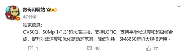 快科技4月28日消息,博主数码闲聊站曝光了豪威集团的一颗全新传感器OV50Q,这枚传感器将会大规模应用到骁龙8 Elite 2旗舰机型上。