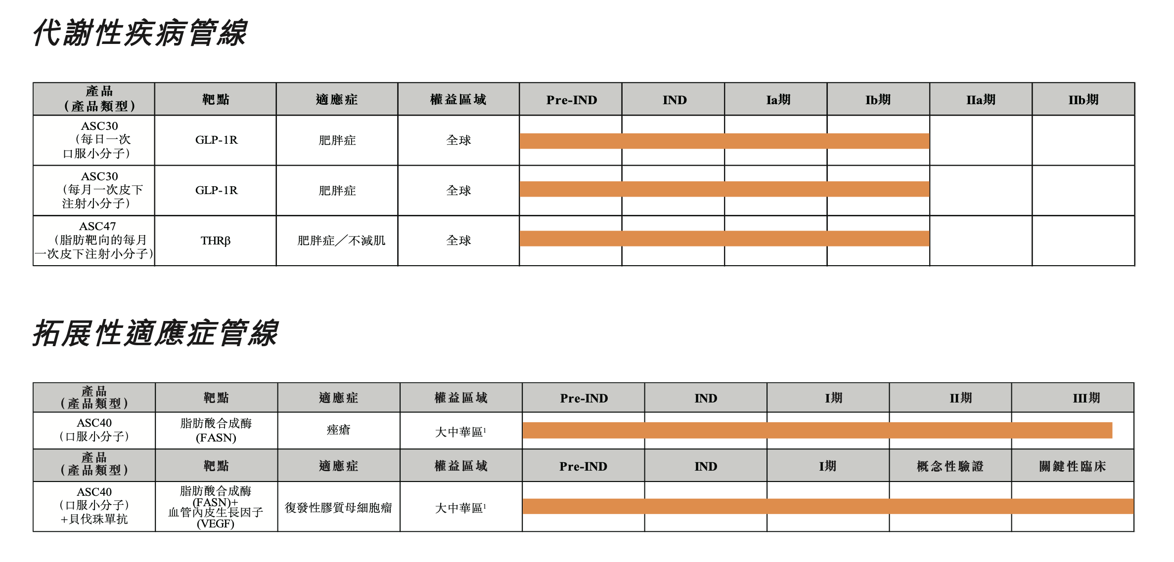 最新财报数据显示,歌礼制药拥有GLP-1R类(胰高血糖素样肽-1)口服小分子ASC30和皮下注射小分子ASC30以及甲状腺激素β受体(THRβ)ASC47等代谢性疾病管线,均处于临床阶段。此外,公司还在拓展ASC40单药和联合用药的适应症,包括痤疮和复发性胶质母细胞瘤。