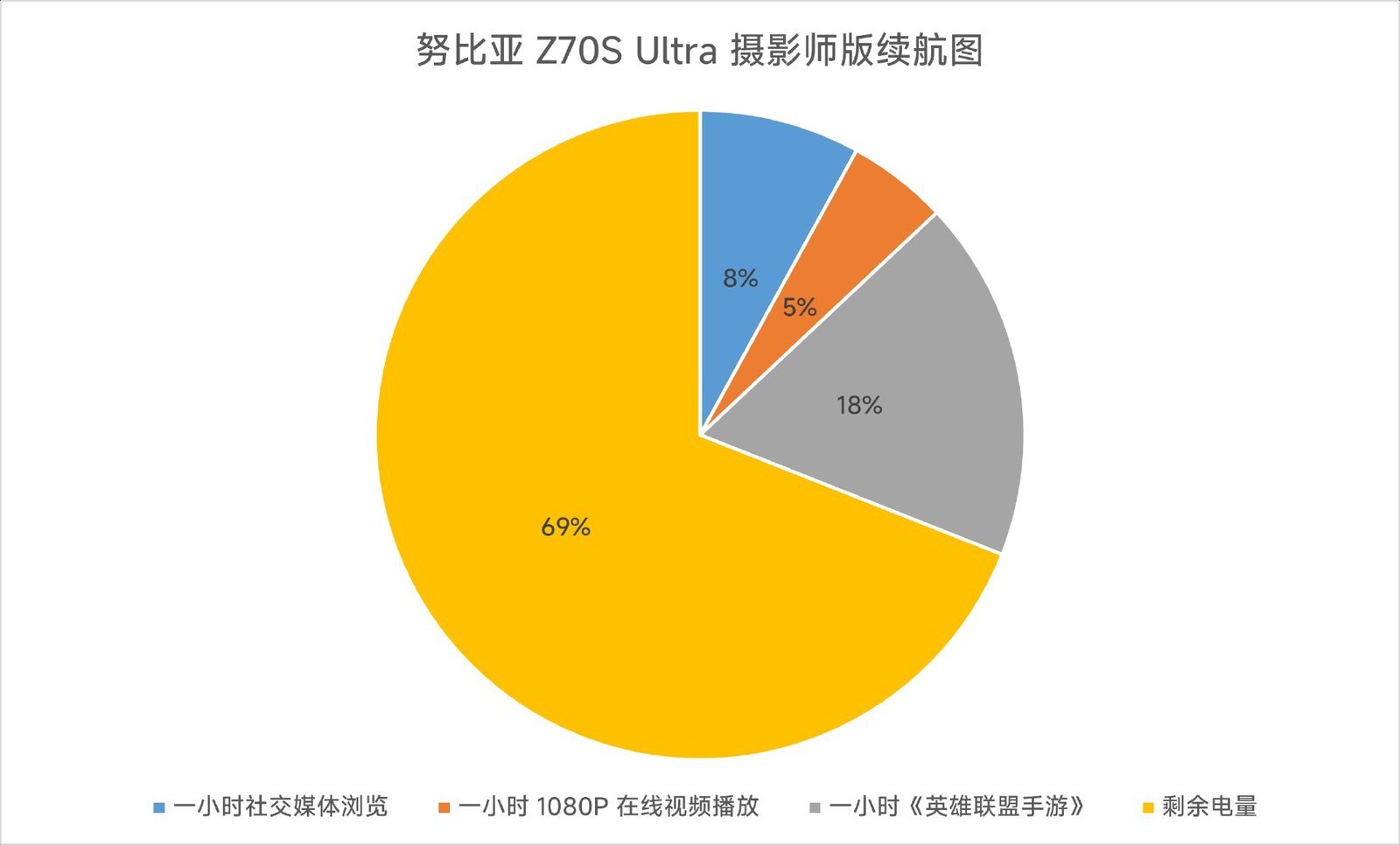 我们也实际地测试了这一块超大的电池,得到了下面的这张续航占比图。可以看到,这块超大电池确实带来了相当余裕的续航,在常用的微博浏览和哔哩哔哩视频播放中,耗电量都可以称得上是微乎其微,而在应对《英雄联盟手游》的 144Hz 满帧运行时,它的续航依旧强劲,让人玩得相当安心。