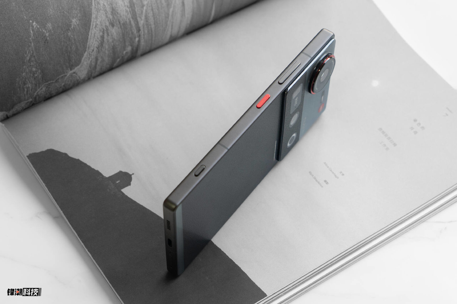 在机身的侧面,我们也能看到一些熟悉的元素,比如略带一些小小过渡弧面的黑色直框、亮眼的红色电源键、滑动键和有两段行程的拍照键。