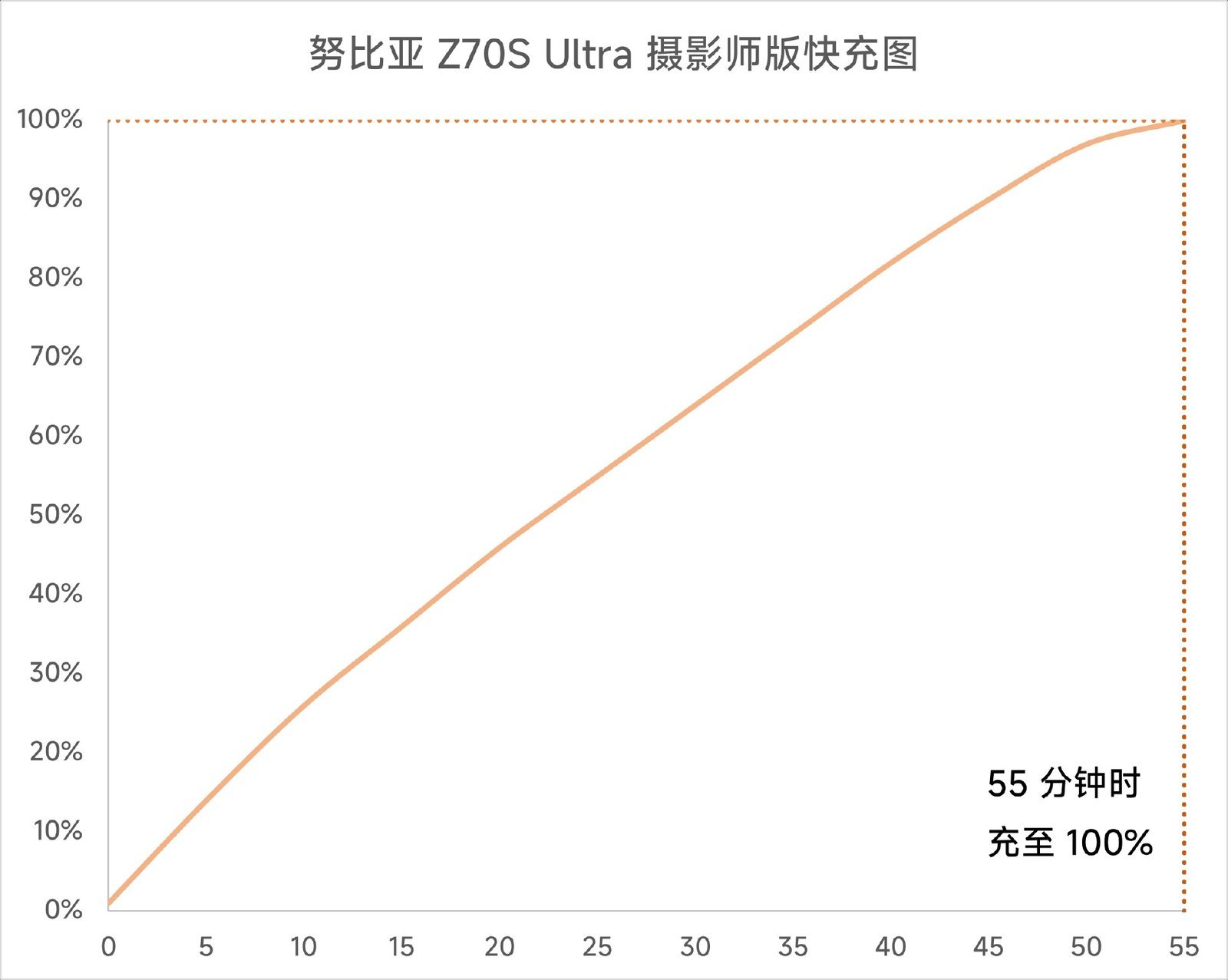 至于快充方面,努比亚 Z70S Ultra 摄影师版有线快充给到了 80W,搭配这块大电池的时候,从 1% 开始,只需要 55 分钟就能充至 100%,补能的效率依旧非常高,与电池的大容量形成了令人安心的一套“组合拳”。