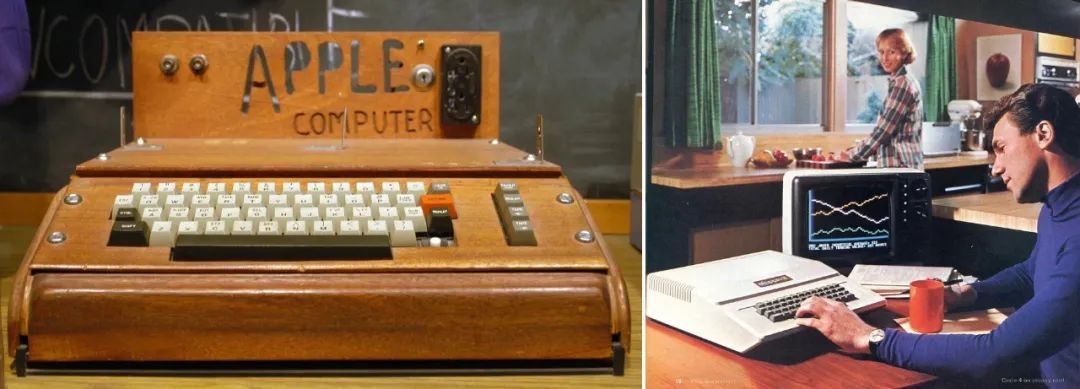 左图为 Apple I ,右图为刊登在 Byte 杂志上的 Apple II 广告