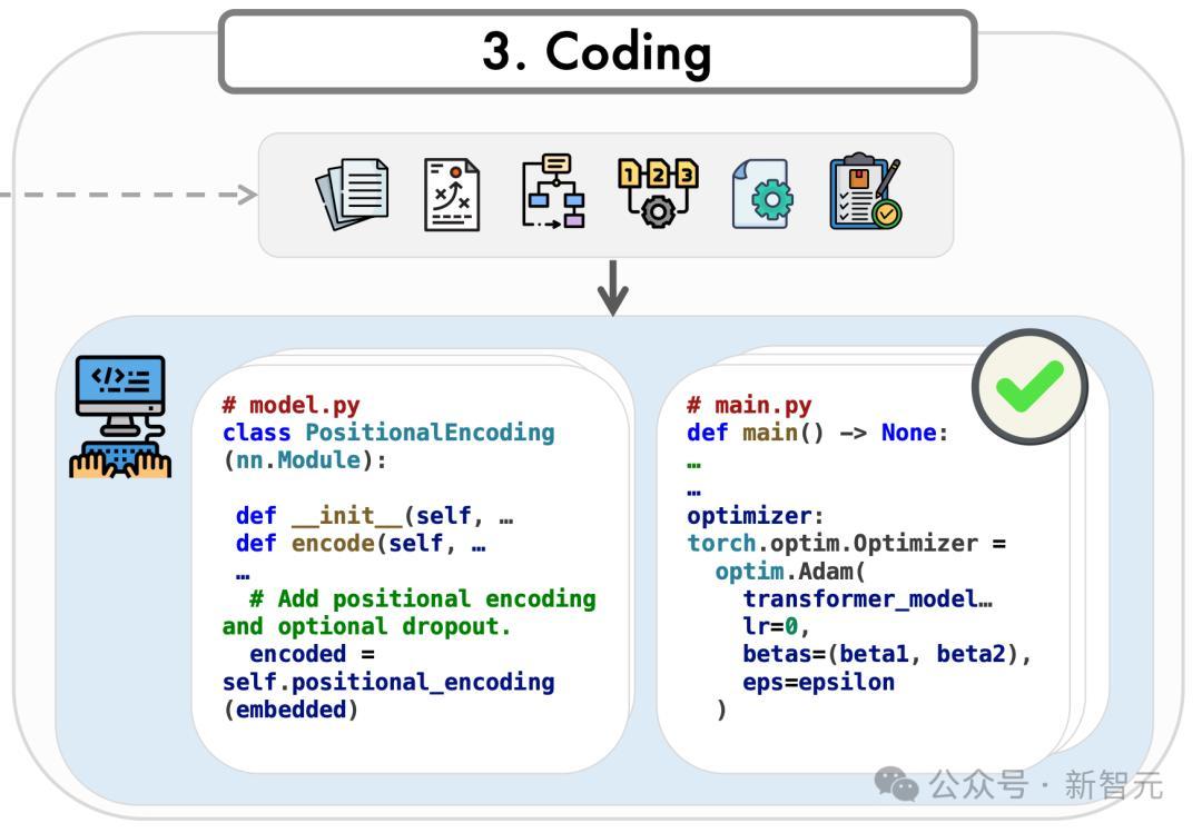 最后阶段是编码阶段,该阶段生成构成研究仓库的代码。