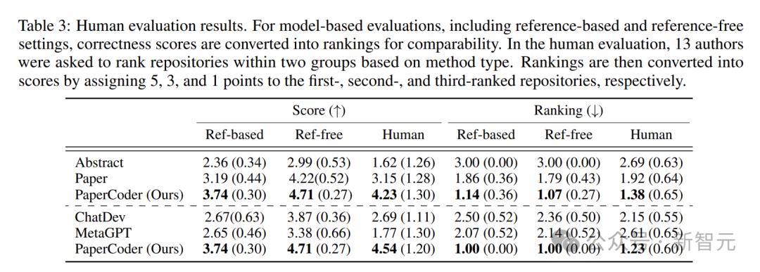 在人工评估中,PaperCoder同样表现出色。在所有评估标准下,PaperCoder都拿到了最高分。