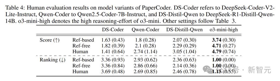 团队还研究了不同大语言模型对PaperCoder性能的影响。