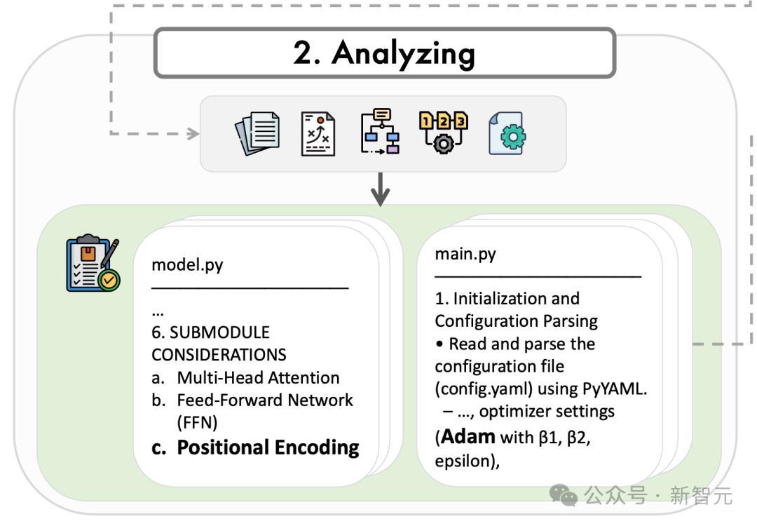 具体来说,分析阶段的输入包括原始研究论文和先前生成的工件(总体计划、架构设计、逻辑设计和配置文件)。