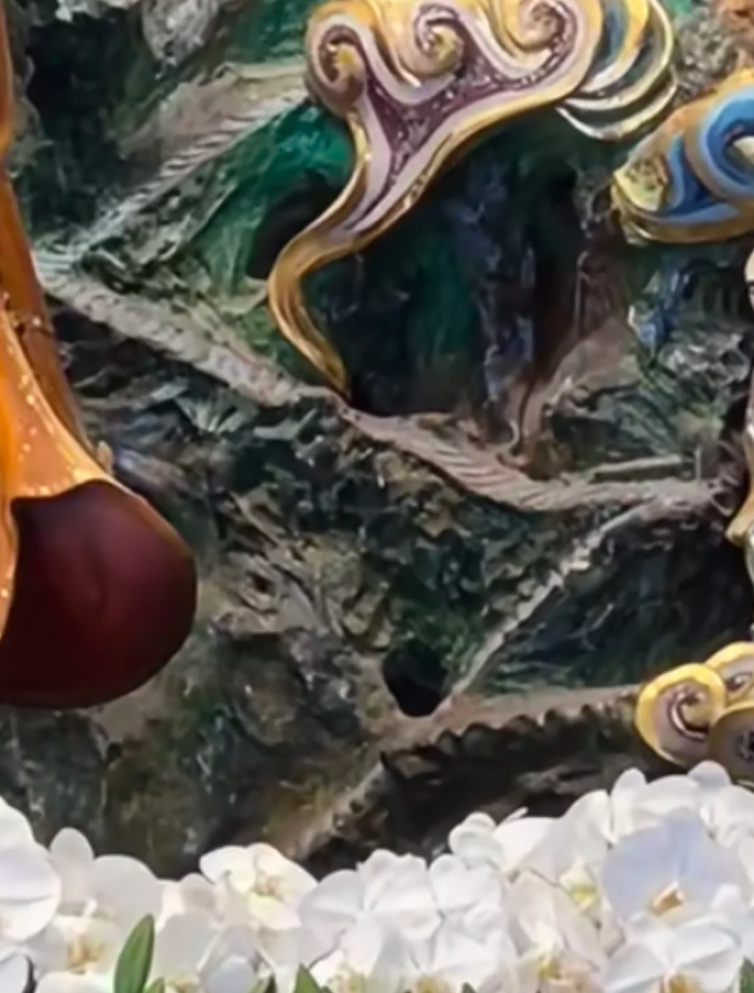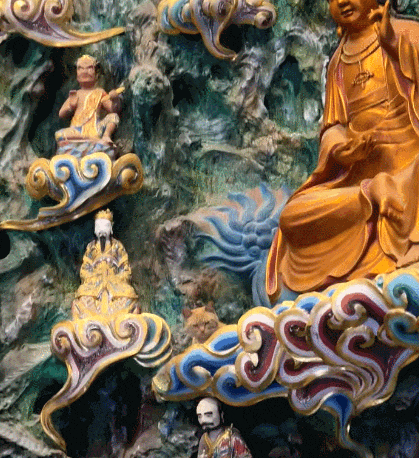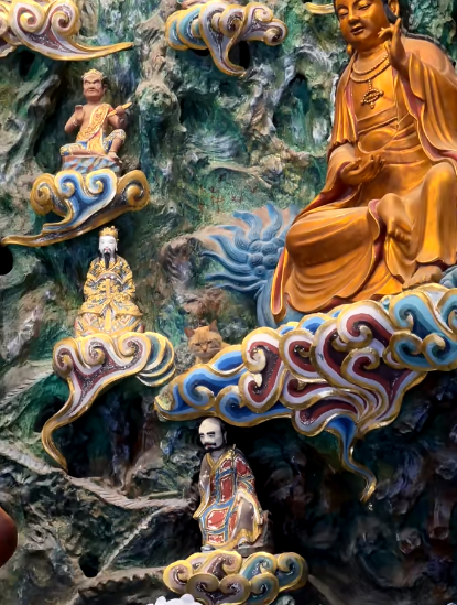 就这么一脸理直气壮地卧在菩萨和罗汉的莲花宝座上~