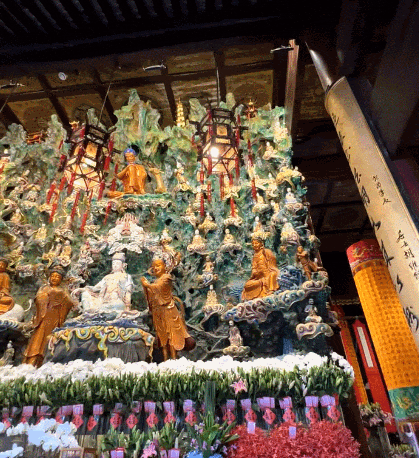 博主@wobushimomo 在上海龙华寺参观时,一抬头有点绷不住了…
