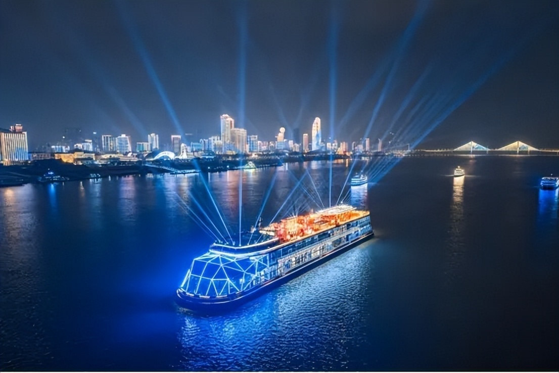 长江游船梦幻联动长江灯光秀,举办日落音乐派对、欢乐蹦迪等活动。