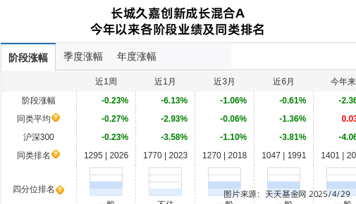 财报显示,长城基金旗下长城久嘉创新成长混合A进入中科海讯前十大股东,且为今年一季度新进。今年以来收益率-2.36%,同类排名1401(总2008)。