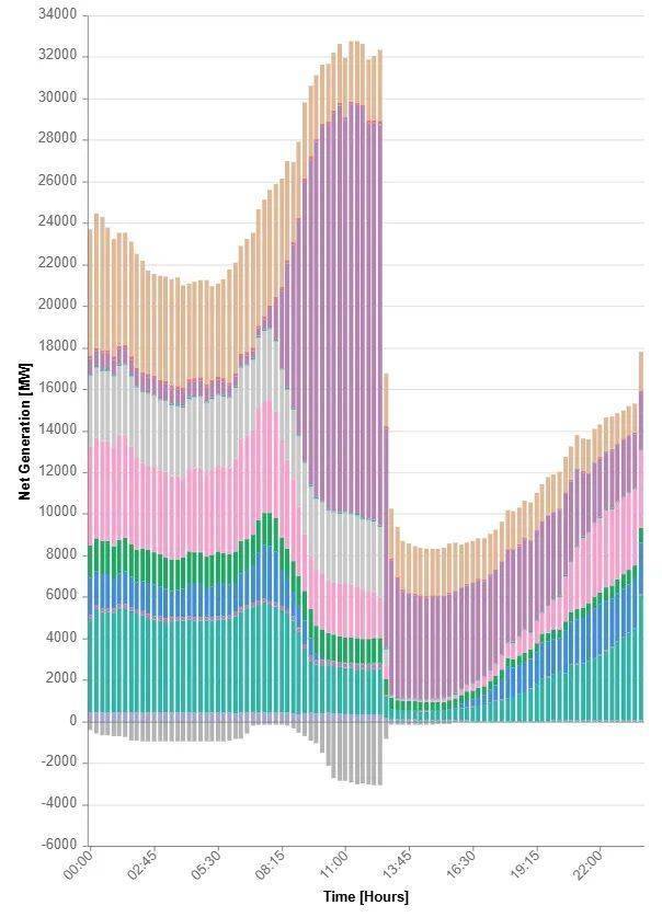 英国前电网运营商、Reactive Technologies 战略主管邓肯·伯特(Duncan Burt)表示:“如果太阳能占比非常高,那么电网的稳定性就会降低,除非你采取措施来缓解这种情况。所以,电网的稳定性会比平时更差,这是可以预料的。”