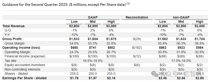 恩智浦预计,其2025年第二季营收将介于28.00-30.00亿美元之间、以中间值(29.00亿美元)来计算相当于同比下滑7%、环比增长2%,但略高于分析师预期的28.5亿美元;Non-GAAP毛利率预估将介于55.8-56.8%之间(中间值为56.3%),Non-GAAP每股收益预估将介于2.46-2.86美元之间(中间值为2.66美元),略高于分析师预期的2.65美元。