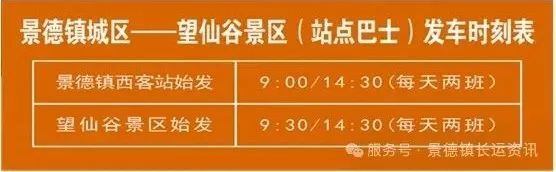 据悉,该线路每日双向发车两班,景德镇西客站发车时间为9:00、14:30,望仙谷景区返程时间为9:30、14:30,单程票价80元。
