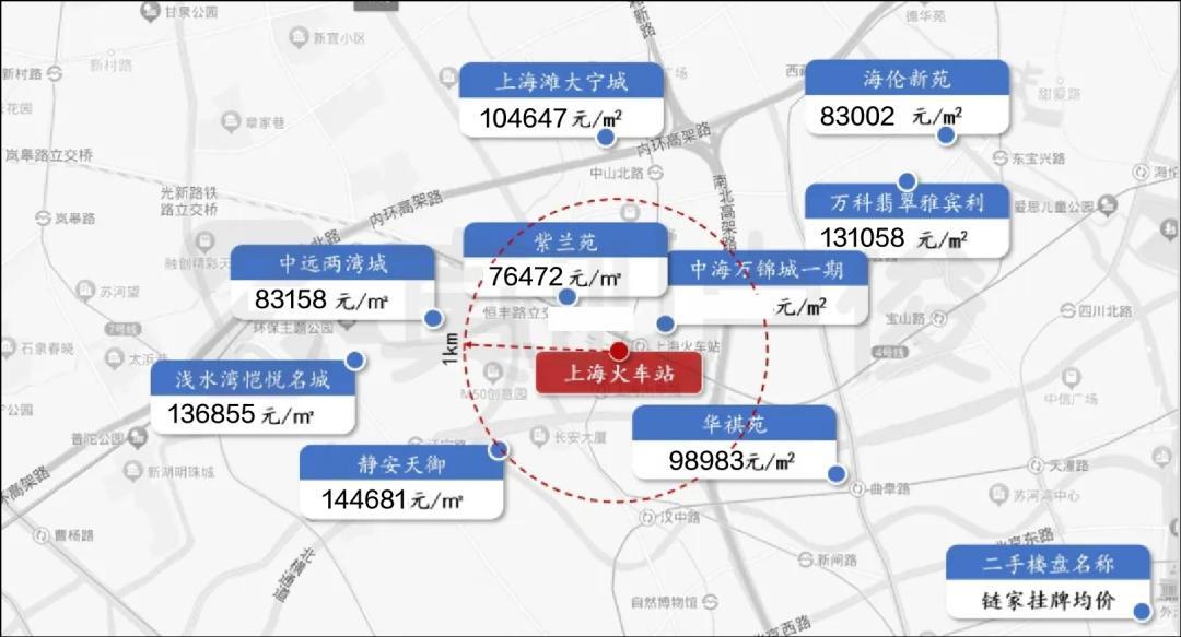 上海火车站附近小区无论属于静安还是普陀,房价都和到火车站的距离没有直接关系。