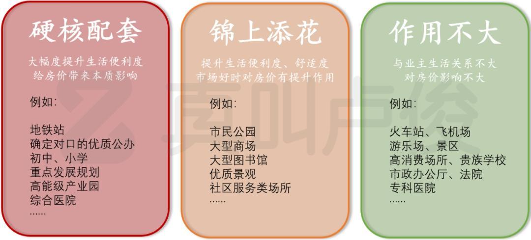 我们整理了下面一图,简单区分各类配套的服务能级。