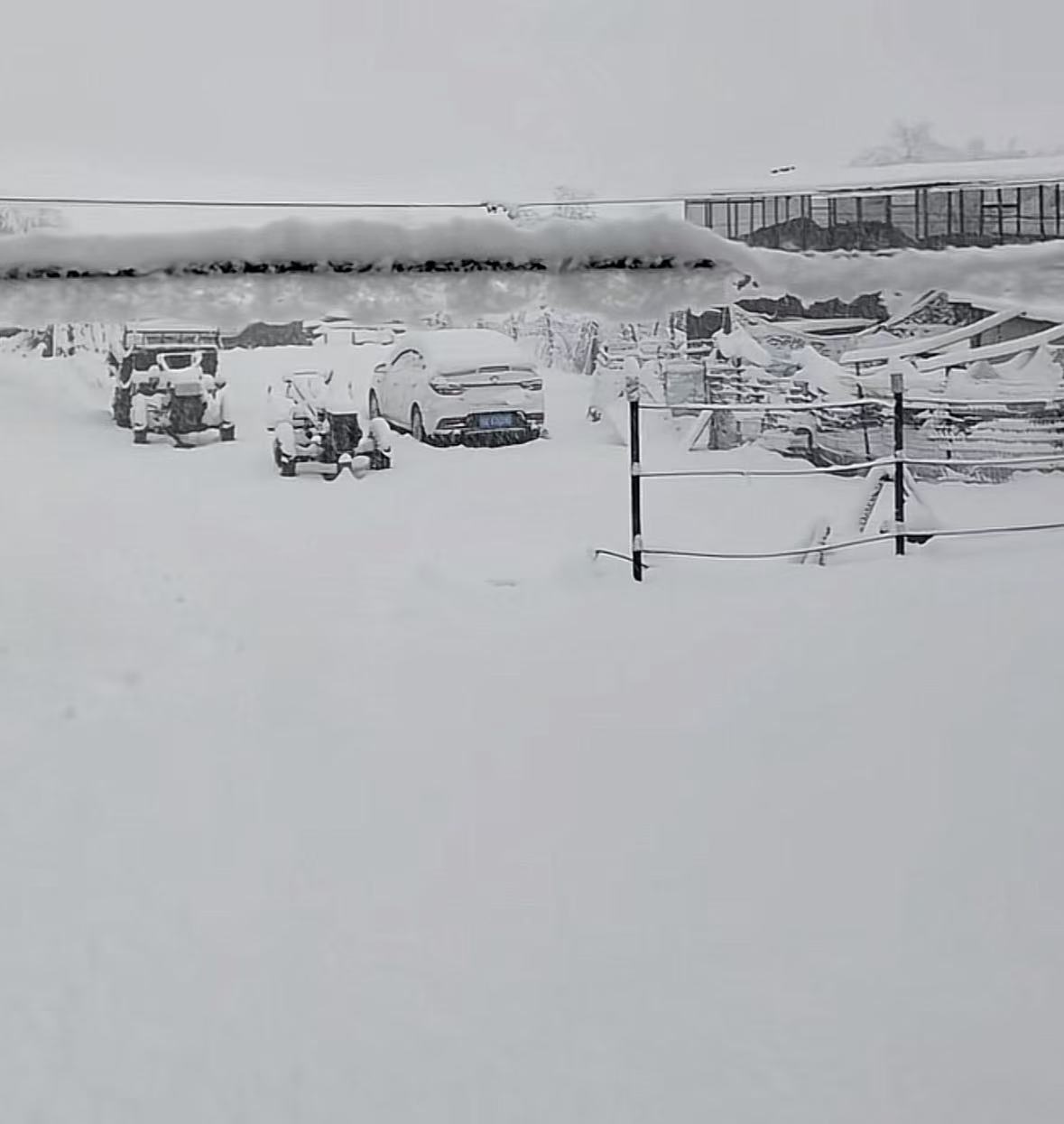 4月28日,吉林省蛟河市突遇降雪,室外白雪皑皑。图/社交平台