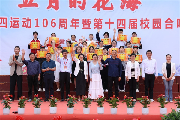 最后,与会领导与嘉宾为获奖班级颁奖。合唱节在《光荣啊,中国共青团》全场大合唱的歌声中圆满落幕。
