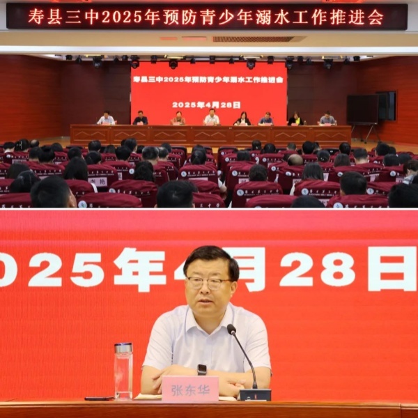 为切实保障学生生命安全,强化校园安全管理,4月28日,寿县三中在学术报告厅召开预防青少年溺水工作推进会。县教体局党委委员、寿县三中党总支书记张东华,校长杨高虹出席会议并讲话,全体教职工参加了此次会议。