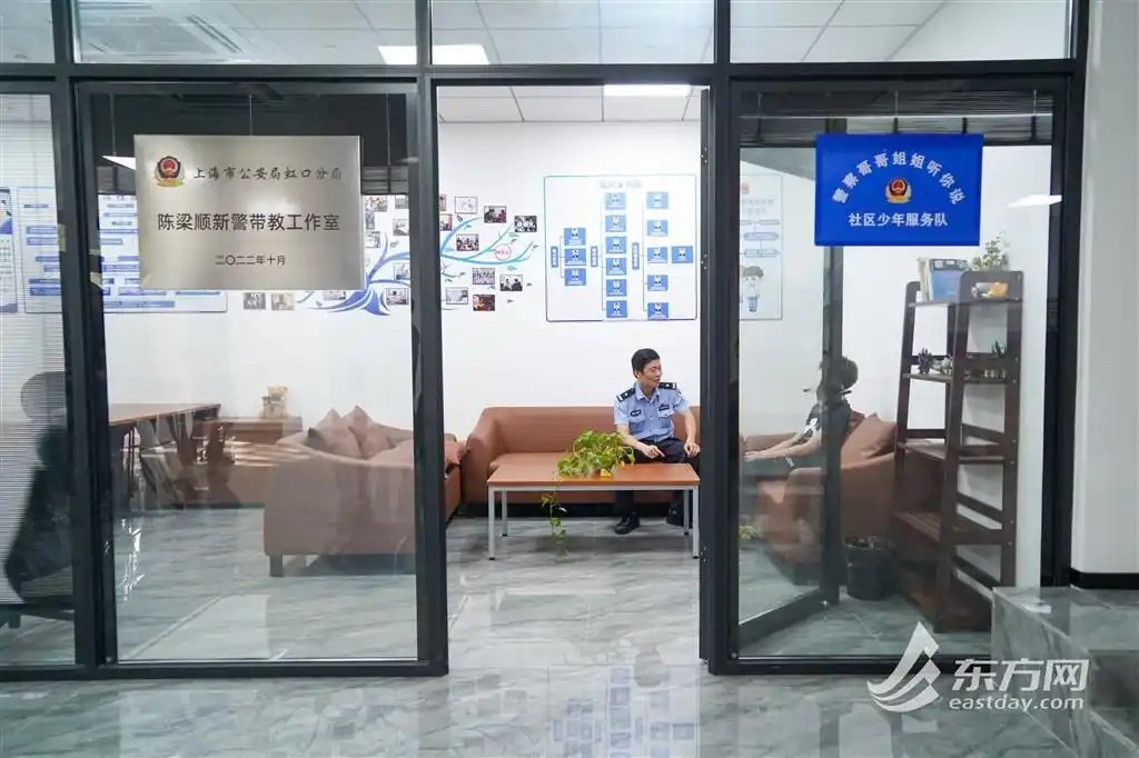 为吸纳更多社会力量参与青少年的帮扶工作,2021 年,陈梁顺依托嘉兴路派出所发起成立社区少年服务队, 将辖区内青年民警、青保教师、律师、社工等都拉进来,开展 “一对一” 结对帮扶。2022 年,社区少年服务队在全区铺开,陈梁顺带领 9 支社区少年服务队,主动介入帮扶50余名青少年。