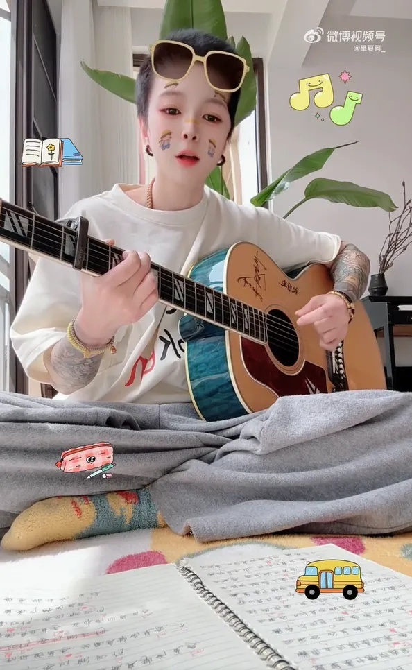 在晒出的一段视频中,毕夏一头干练短发,手术伤口依稀可见。她手抱吉他自弹自唱,状态良好,还有在练舞室跳舞的场景。