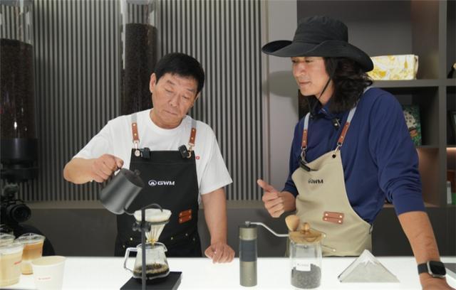 当起试驾员、讲解员、咖啡师的魏建军,用一种独特的松弛感,与观众轻松交流,展现出长城不仅有技术有实力,还有活力有温度能够服务好每一位车主的形象。
