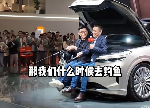 在乐道展台,李斌还坐进了新车乐道L90的前备箱里——铺上坐垫靠枕就成了一个专属休闲座,李斌拿起钓竿模拟起坐在前备箱钓鱼的场景,很有创意。