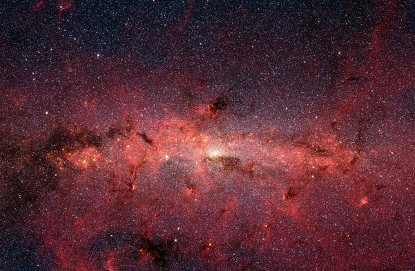 2009年银河系中心区域的图像,由哈勃太空望远镜、斯皮策太空望远镜和钱德拉X射线天文台等望远镜组成。(Image credit: NASA, ESA, SSC, CXC and STScI图片来源:NASA、ESA、SSC、CXC 和 STScI)