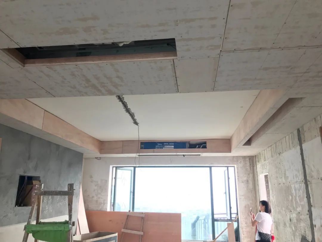 如果是客厅面积较小、或是卧室里装中央空调的话,也可以采取局部吊顶的方式,只在内机安装的区域做吊顶;