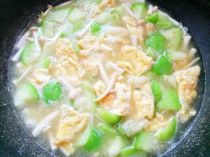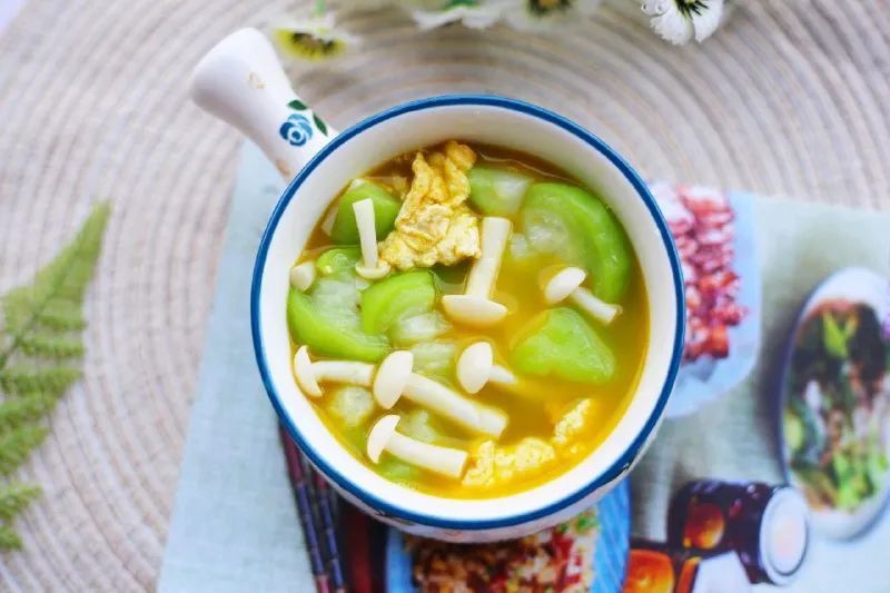 鲜美无比的丝瓜鸡蛋菌菇汤就做好啦。