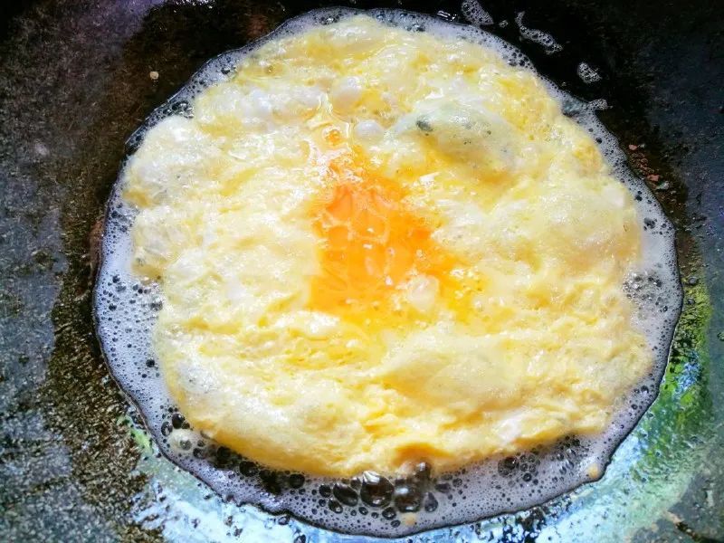 热锅热油,倒入鸡蛋煎成蛋皮铲碎盛出备用。