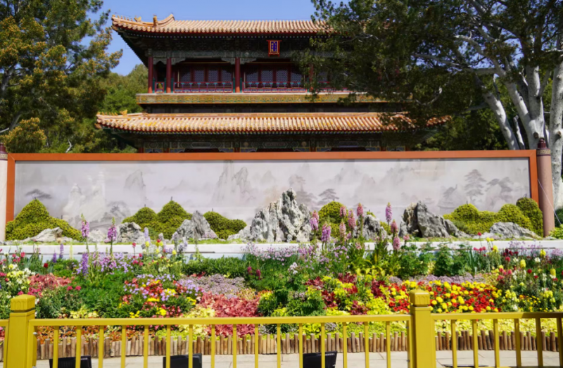 “五一”期间,景山公园打破传统的日间赏花模式,打造夜间赏花景观。沿着后山主路,350盏中式牡丹灯笼,铺就一条夜游走廊。西区科普园作为此次夜赏项目的全新区域,增添别样的浪漫氛围。南门花卉景观《至阳丹青》搭配古画背景和山形立体结构,将盆景艺术与园艺造景相结合,节日期间,两侧的夜景照明聚焦盆景,打造夜间“视觉舞台”,展现诗画意境。