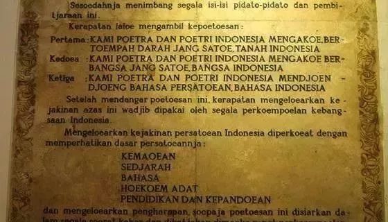 1928年,在雅加达举行的第二届印尼青年代表大会上,更是通过了“一个国家,一个民族,一种语言”的誓言,独立运动人士正式确立印尼语作为印尼全体人民的共同语言地位。