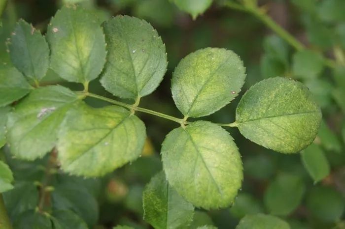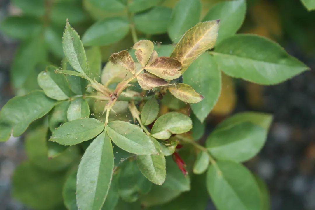 植物一旦感染红蜘蛛之后,叶子表面会出现一些针孔大小的一些黄斑,黄色的斑点会特别细小,这些就是由于红蜘蛛吸取植物的汁液,导致叶片里面的叶绿素受到破坏,叶子就会显现出很多黄色的斑点。在叶子背面则会有一些白色、黄色和黑色的物质,有些是红蜘蛛的尸体,也有的是成虫和若虫。