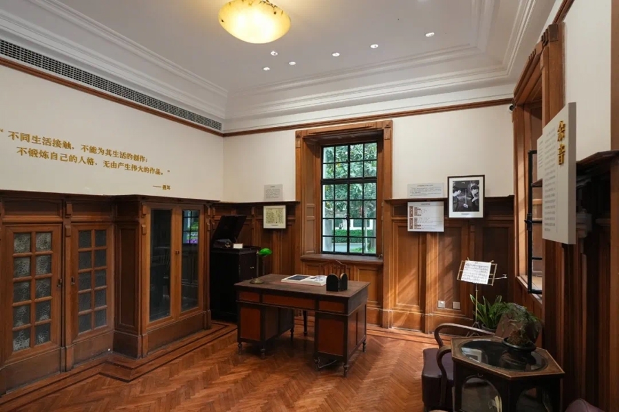 纪念馆一楼以“国歌诞生”为主题,复现了1934-1935年百代唱片音乐部的历史场景。