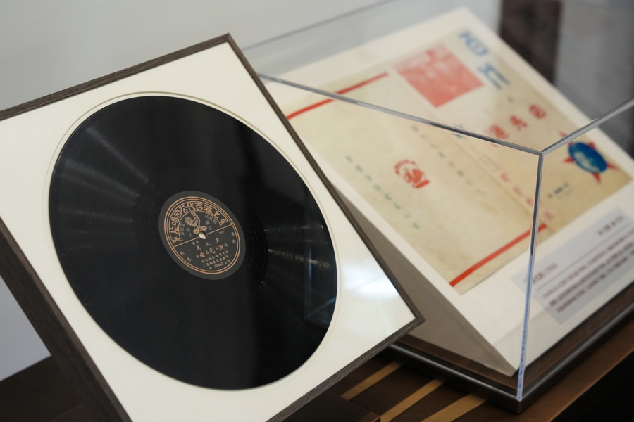 此外,现场还展示了1949年第一张国歌唱片及当年10月1日《文汇报》“国歌唱片今日灌成”的报道原件,《解放区的天》《军队向前进》等新中国首批黑胶唱片,以及接管大中华唱片厂的珍贵历史影像资料。