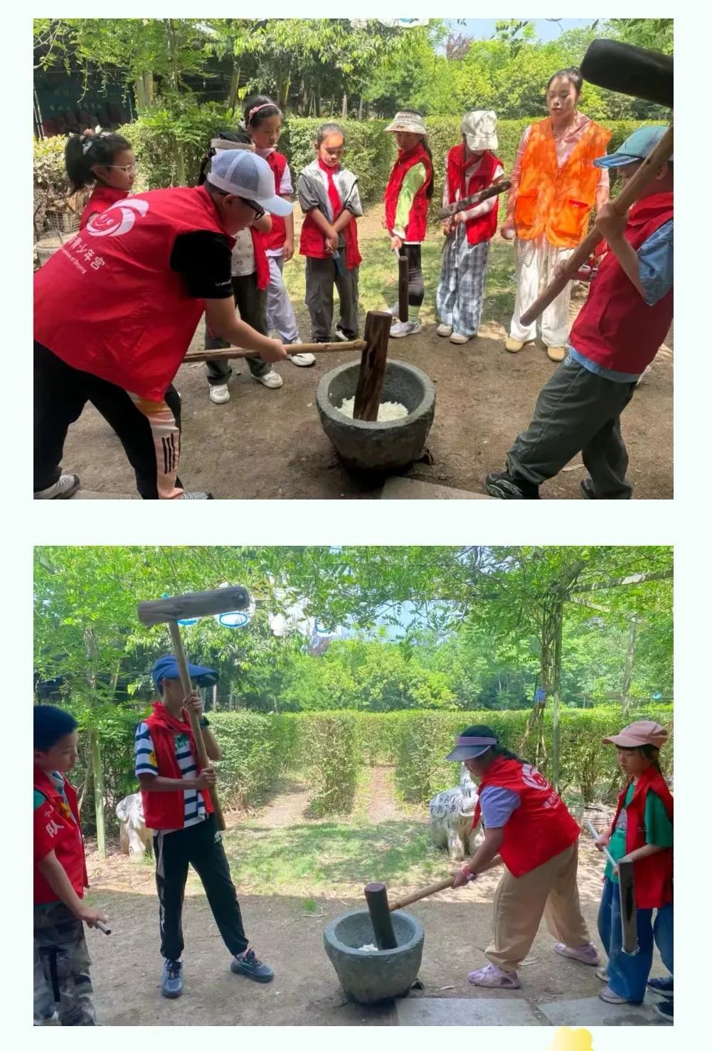 在老师的带领下,队员们走进飘满米香的小院,开启一场充满趣味与意义的打糍粑实践之旅。这不仅是一场美食制作的体验,更是一次传统文化的传承之旅。在木槌与石臼的碰撞声中,队员们触摸到了传统技艺的温度,懂得了传承的意义,也在心中种下了敬畏传统、珍视匠心的种子 。