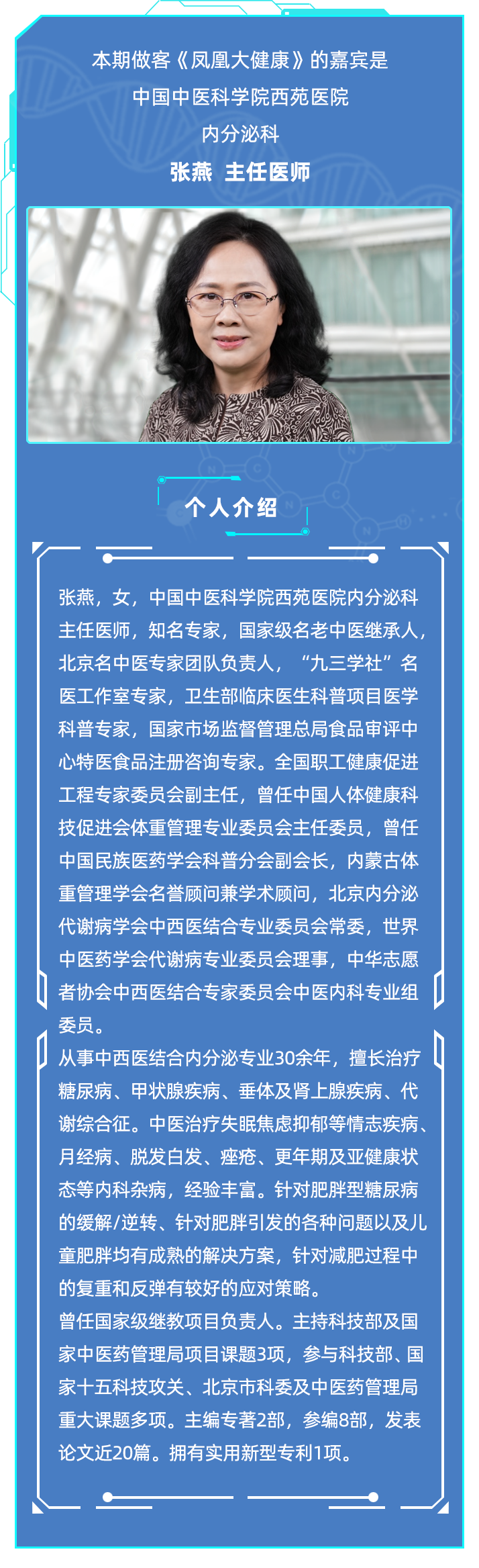本期做客《凤凰大健康》的嘉宾是中国中医科学院西苑医院内分泌科张燕主任医师