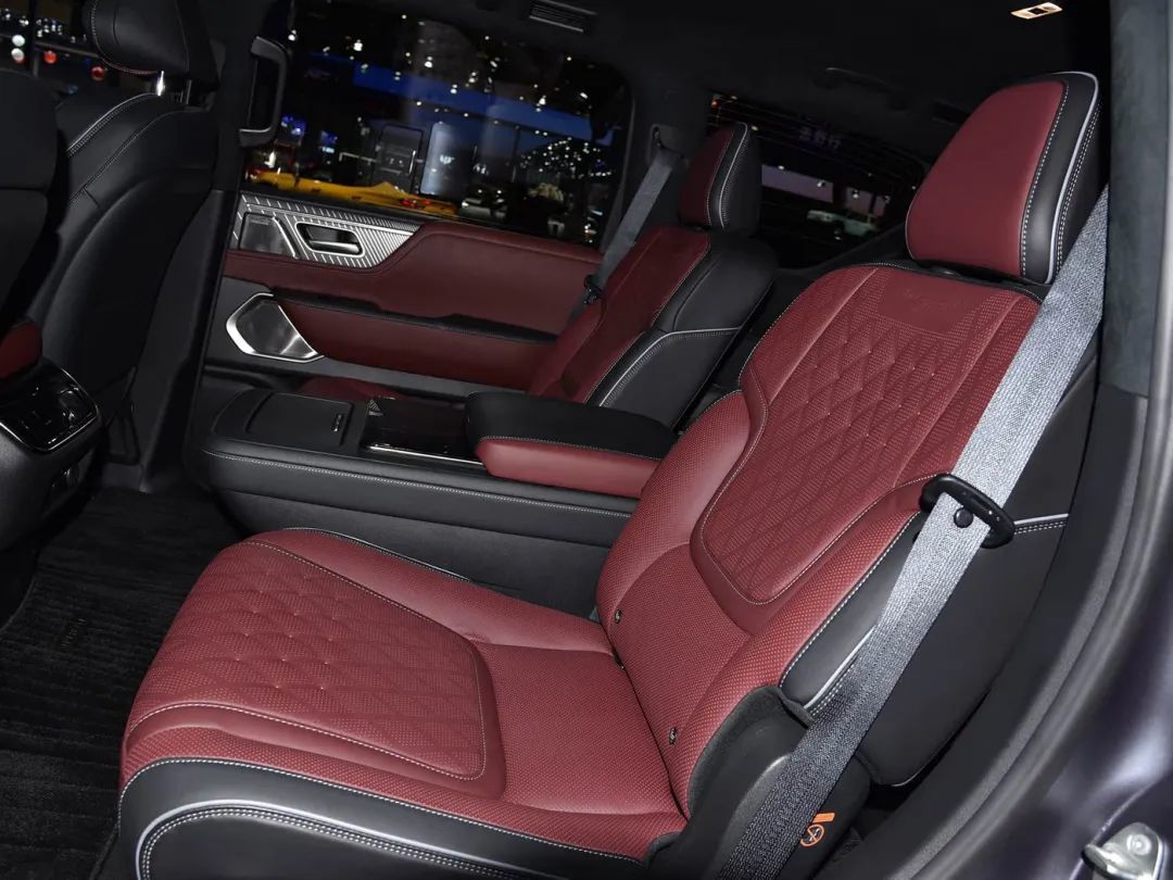 全新英菲尼迪QX80采用三排座椅布局,Sensory车型为2-3-3式8座布局,配备高级半苯胺真皮座椅;Autograph车型为2-2-3式7座布局,采用半苯胺双色真皮座椅(带签名压花、特殊绗缝图案)。全新英菲尼迪QX80前排座椅支持8向电动调节(记忆功能)与4向调节电动腰托,带按摩、加热和通风功能,中央扶手带冰箱。Autograph车型第二排为双独立式座椅,支持电动调节、遥控折叠、触摸屏、4向电动腰托、按摩、加热和通风功能。第三排座椅标配电动升降、一键式进入功能,支持加热功能。