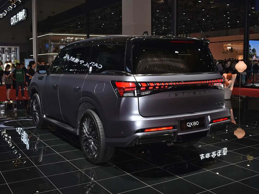 外观方面,全新英菲尼迪QX80采用全新的设计风格,整体气场相当强。在细节设计上,车头采用大尺寸前格栅,并搭配可发光的车标以及分体式大灯组,分体式头灯组上方灯带内部为连续分布线段的LED光源,下方的远近光灯组则采用了更加方正的光源设计,视觉效果还是挺不错的。尺寸方面,全新英菲尼迪QX80长宽高分别为5365/2030/1945mm,轴距为3075mm。车尾部分,全新英菲尼迪QX80采用很多的横向线条,使得它与老款车型形成了鲜明的风格反差,不仅拉伸视觉宽度也增添层次感,尾灯采用当下流行的贯穿式风格,内部使用竖状结构进行点缀,车尾上方配有扰流板和高位刹车灯,牌照框则位于后包围中央。