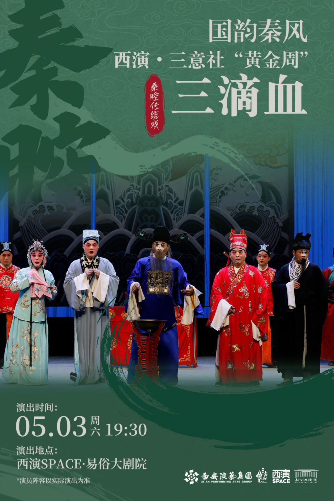 拿手好戏不停歇,第五届“国韵秦风”“五一”假期秦腔系列演出,将于5月3日至5日在西安鸣锣开唱,特邀西演·西安三意社为大家呈现三部秦腔经典大戏——《三滴血》《铡美案》《周仁》,以非遗传承与专业表达为观众献上秦腔艺术盛宴,让戏迷朋友在“家门口”零距离感受传统戏曲的魅力。