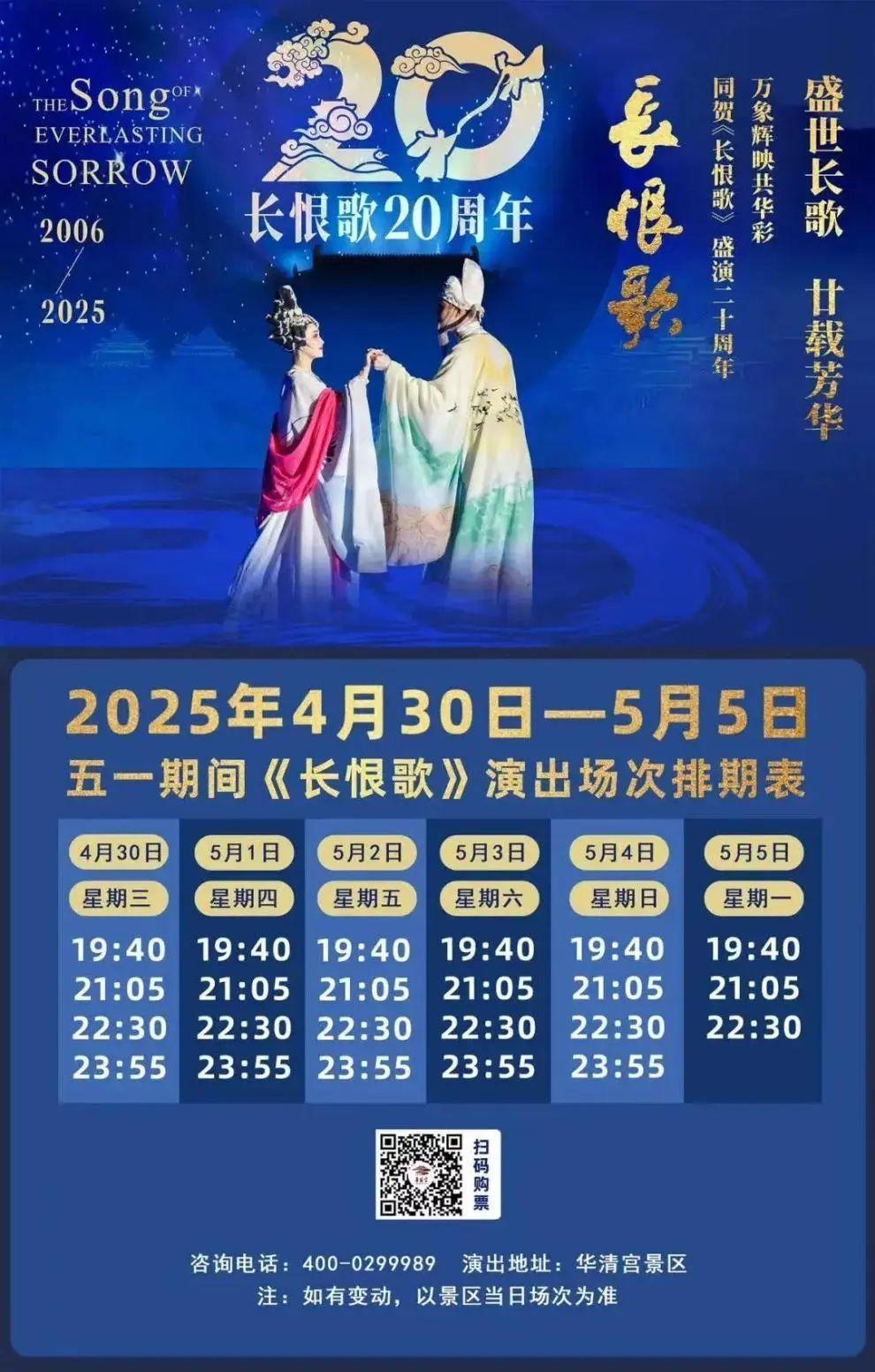 作为中国首部大型实景历史舞剧《长恨歌》,以白居易传世名篇《长恨歌》为蓝本,在历史故事的真实发生地——西安临潼华清宫,将历史故事与实景演出相结合,被誉为“中国旅游文化创意产业的典范之作”。“五一”期间,华清宫景区结合市民游客需求,每天加演至3-4场,让观众在浓厚的节日氛围中,感受盛唐风华与《长恨歌》的文化魅力。