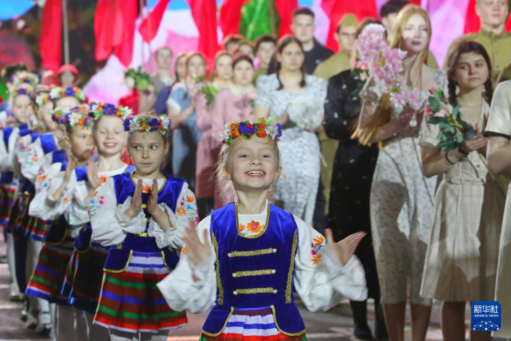 5月2日,在白俄罗斯首都明斯克,表演者参加纪念卫国战争胜利80周年阅兵式彩排。